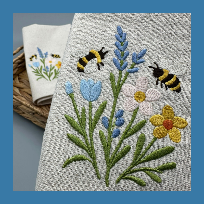 Floral embroidered napkins and table runners that bring a soft, welcoming touch to your table