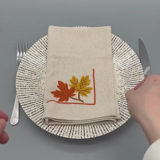 Gather & Harvest | Autumn Leaves | Set of 2 Embroidered Linen-Look Napkins
