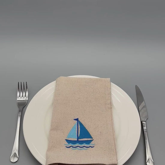 Morning Sail | Set of 2 Embroidered Linen-Look Napkins