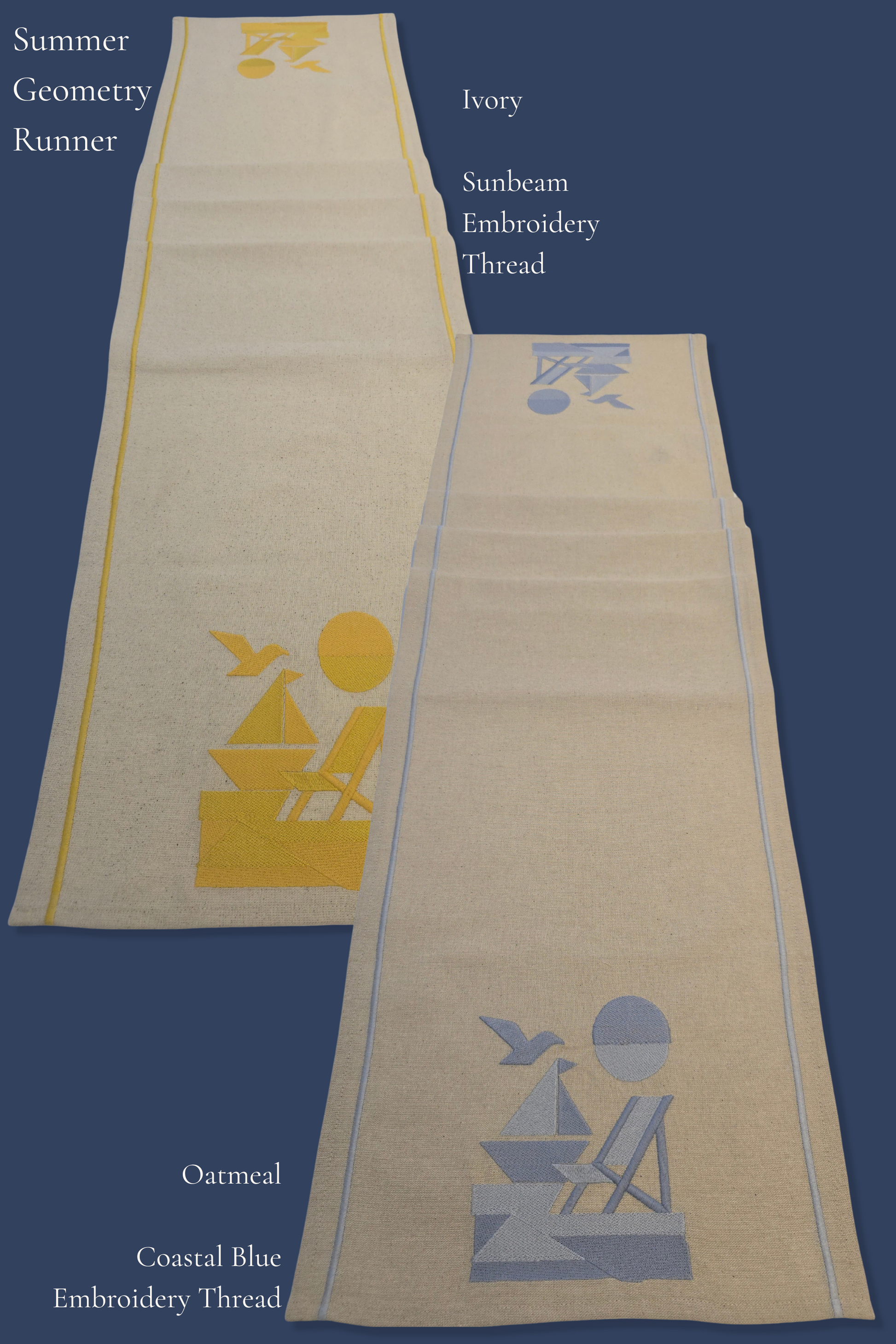 Made from a linen-look blend that feels smooth and sturdy, this collection is available in two embroidery thread colors. Choose Sunbeam thread on ivory fabric for a bright, crisp style or Coastal Blue thread on oatmeal fabric for a softer, coastal look.