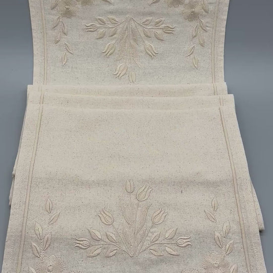 Timeless Blooms | Bloom | Embroidered Linen-Look Runner | Ivory